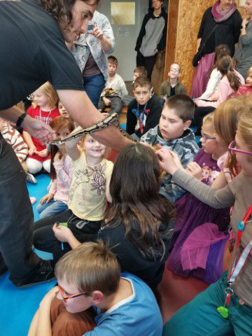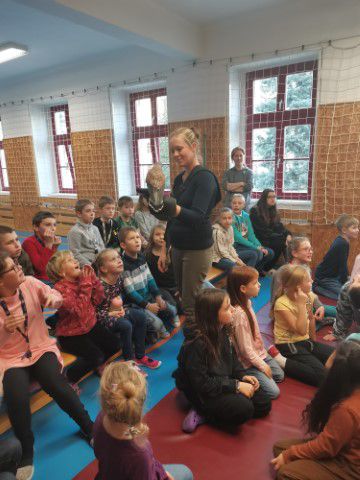 V pátek 11. 11. jsme zažili v naší tělocvičně neuvěřitelné dobrodružství. Navštívili nás manželé Pelikánovi se svými svěřenci ze záchranné stanice Lipec, která sídlí ve žlebské oboře. Dětem létali nad hlavami dravci, pohladily si roztomilého ježka, potkana, a dokonce i hada a švába. Dozvěděli jsme se mnoho informací a zajímavostí z jejich života, především jaké smysly využívají a jak je důležitá ochrana přírody. Přednáška se nám moc líbila.